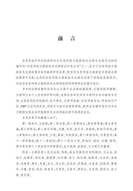 作为‘信息网络与高新技术法律前沿实务丛书’的重要组成部分,本书兼具理论深度与实践价值,是律师、企业法务、司法人员及IT管理者了解中国TMT行业法律环境的实用参考,也适合法律与IT专业学生拓展视野。