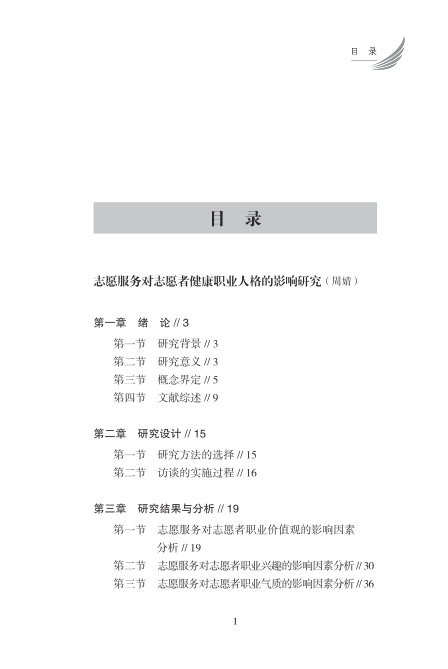书中既有关于志愿服务对职业价值观、职业兴趣、职业能力及人格塑造的影响分析(周婧),也包含针对老年志愿者的质性案例研究(殷婷茹),揭示参与志愿活动在心理健康、社会融入与生命意义建构方面的深层作用。