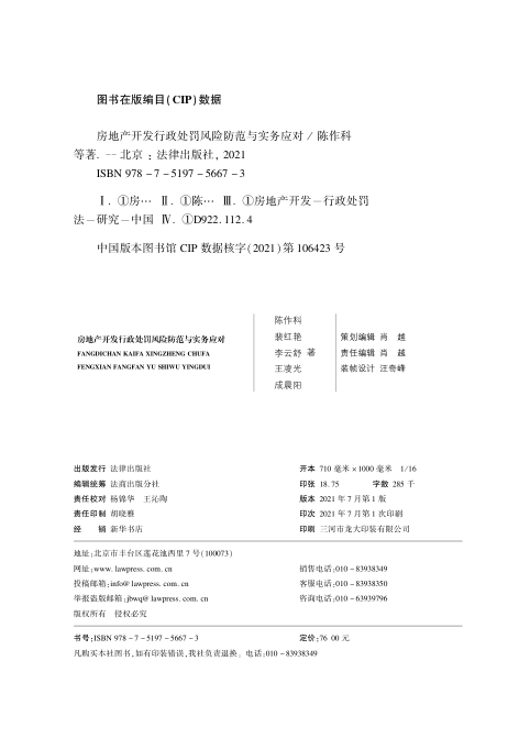 房地产开发行政处罚风险防范与实务应对 陈作科 李云舒 裴红艳 王凌光 成晨阳👈点击保存