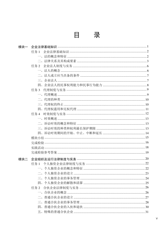 本书是高等职业教育财经类规划教材中的精品示范系列,系统梳理企业运营中涉及的核心法律知识。内容涵盖企业组织、交易担保、人力资源、财税管理、工业产权、公平交易及纠纷解决等八大模块,结构清晰,实用性强。每章通过“案例导读”“任务导入”和“案例分析”等形式,强化理论与实践结合,帮助读者提升法律思维与实务能力。