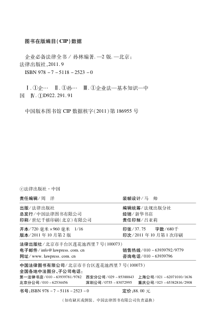 本书由孙林编著,法律出版社2011年出版的第二版《企业必备法律全书》,系统梳理了中国企业运营中涉及的核心法律法规。内容涵盖公司设立、治理结构、合同管理、劳动用工、知识产权及税务合规等多个关键领域,兼具基础性与实用性,适合作为企业管理者、法务人员及创业者日常查阅的参考工具书。虽然内容基于当时有效的法律体系,但其框架清晰、条理分明,对理解中国商事法律环境仍具重要参考价值。