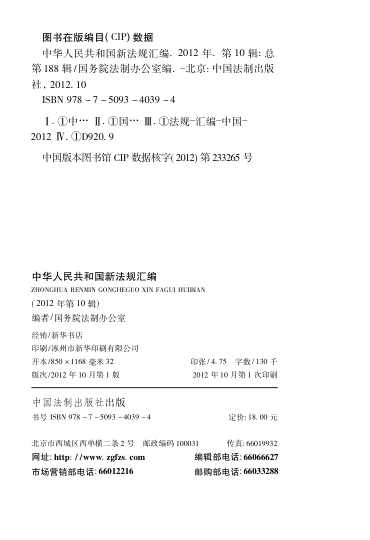 中华人民共和国新法规汇编. 2012 年. 第10 辑: 总第188 辑👈点击保存