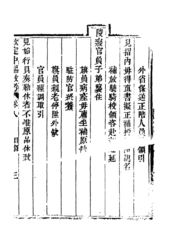 通过细密的行政规定,可见清廷对权力分配、身份秩序与礼法制度的高度掌控。本卷尤为关注驻防官员引见、外省保送、陵寝职官任用等实务流程,是研究清代政治制度、八旗社会及宫廷管理的一手参考资料。适合历史研究者、清史爱好者及制度史读者深入研读。