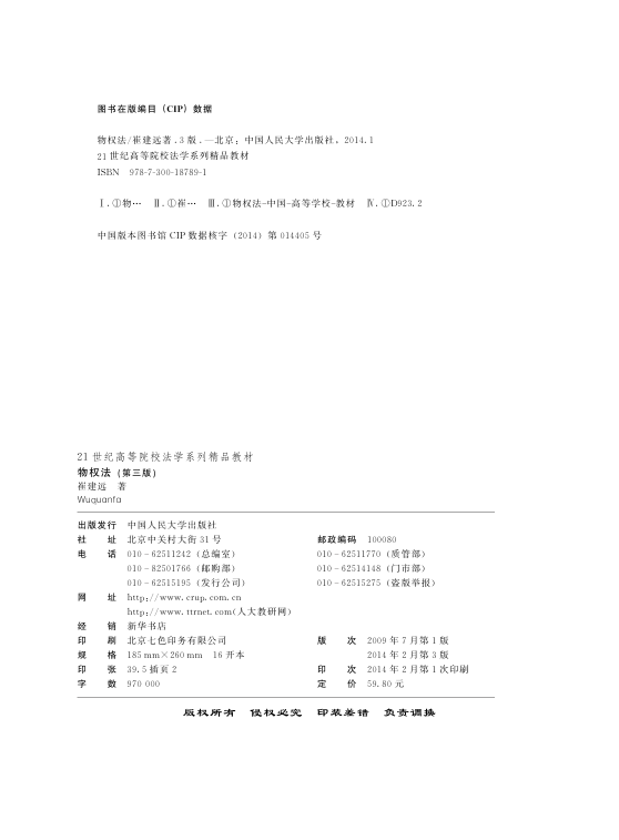本书是清华大学法学院崔建远教授的经典力作,作为21世纪高等院校法学系列精品教材之一,系统阐释了中国物权法的基本理论与制度架构。全书立足现行法律规范,融合解释论与立法论视角,内容涵盖物权变动、所有权、用益物权、担保物权等核心议题,并设有“辨析”“反思”等栏目,启发读者深入思考。
