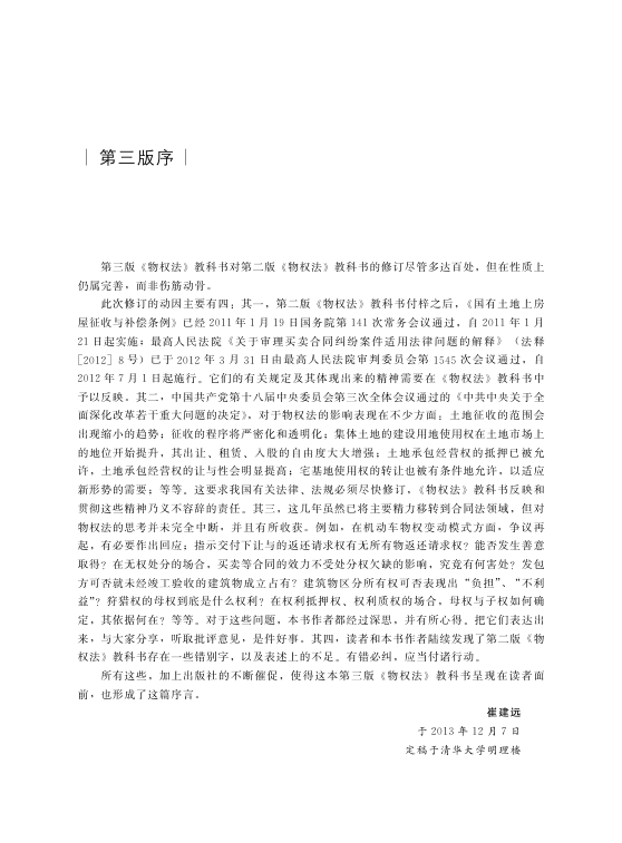 第三版结合《国有土地上房屋征收与补偿条例》、最高人民法院相关司法解释及十八届三中全会改革精神,对土地征收、集体建设用地、宅基地使用权转让等热点问题作出回应,体现了前沿法治动态。书中亦探讨了机动车物权变动、指示交付、无权处分合同效力等理论争议,兼具学术深度与教学实用性。