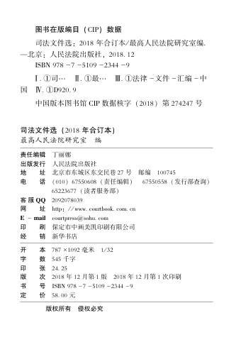 本书由最高人民法院研究室编纂,人民法院出版社出版,系统收录了2018年度发布的各类重要司法解释、规范性文件及指导性案例,是了解当年中国司法实践动态的重要参考资料。内容按月辑录,结构清晰,权威性强,适合法官、律师、法务人员及法学研究者查阅使用。全书近55万字,涵盖民事、刑事、行政等多个领域,体现司法政策走向,具有较高的实务参考价值。