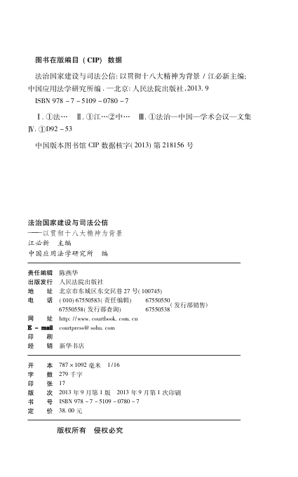 本书以党的十八大精神为指导,聚焦法治中国建设与司法公信力提升的核心议题,汇集了最高人民法院领导、专家学者及一线法官的深度思考与实践智慧。全书围绕依法治国、司法体制改革、司法公开、司法职能发挥及法院理论研究五大专题展开,系统探讨了如何实现公正司法、增强司法权威、服务社会发展大局。