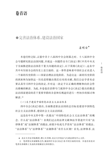 本书为《行政法论丛》第16卷,正值中共十八届四中全会通过《全面推进依法治国若干重大问题的决定》之际出版,具有重要的时代意义。本卷以“完善法治体系,建设法治国家”为主题,深入解读依宪治国、法治政府、法治监督与保障等核心议题。姜明安教授在卷首语中系统阐释了“法治体系”与传统‘法律体系’的区别,强调法治重在治官、治权,并解析了法律规范、实施、监督、保障及党内法规五大子体系的构建路径。内容兼具理论深度与现实关怀,是公法学者、实务工作者了解中国法治进程的重要参考。