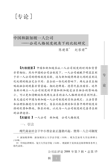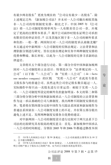本书为《公司法评论》2008年第3辑(总第15辑),由赵旭东、宋晓明主编,江平担任编委会主任,汇聚多位公司法领域权威学者的深度研究成果。书中收录的专题论文聚焦中国与新加坡一人公司制度的比较分析,从立法背景、法理基础到实务影响层层展开,深入探讨大陆法系与普通法系在公司人格理论上的差异与融合。尽管两国几乎同期承认一人公司,但在制度设计上却呈现‘一松一紧’的鲜明对比,本文由此出发,反思我国现行制度的利弊,并提出优化路径。适合公司法研究者、实务工作者及比较法爱好者阅读参考。