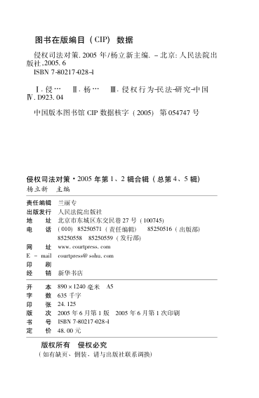 本书由杨立新教授主编,聚焦中国侵权法领域的司法实践与理论探讨,收录了2005年度前沿研究成果与典型案例分析。内容涵盖侵权行为的法律适用、责任认定及司法裁判思路,具有较强的实务参考价值,适合法官、律师、法学研究者及高校师生阅读。作为连续出版物的重要辑次,本书体现了当时侵权司法应对的主流观点与发展脉络。