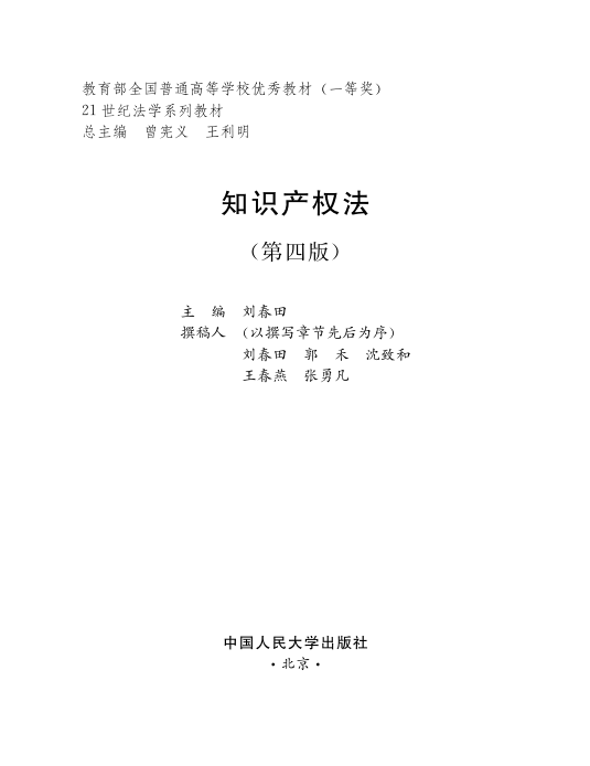 本书由我国著名知识产权法学者刘春田教授主编,是教育部认定的全国普通高等学校优秀教材(一等奖),被广泛应用于高等院校法学教育。作为“21世纪法学系列教材”之一,第四版在继承前三版严谨体系的基础上,结合中国法治实践最新发展,系统阐述了著作权、专利权、商标权及反不正当竞争等核心内容。全书结构清晰、理论扎实、贴近实务,既体现学术前沿性,又兼顾教学适用性,是法学专业学生、研究人员及实务工作者不可或缺的基础读本。本书亦被列为国家推荐教材,具有权威性与广泛影响力。