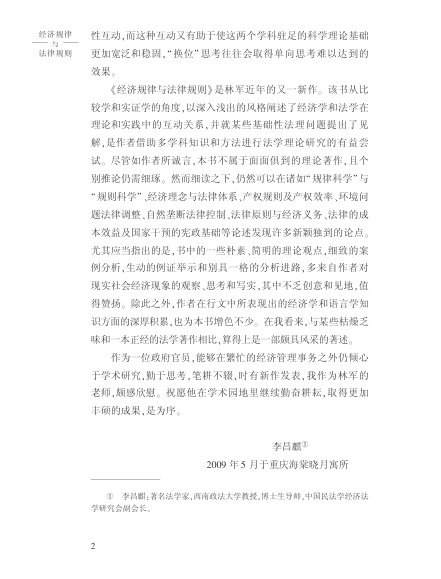 本书《经济规律与法律规则》是林军近年来在法学与经济学交叉领域的重要研究成果。作者从比较与实证视角出发,深入探讨了经济规律与法律规则之间的互动关系,涵盖产权效率、法律成本效益、环境规制、自然垄断控制等关键议题。书中提出,法学作为‘规则科学’,经济学作为‘规律科学’,二者虽路径不同,却可在现实社会问题中实现良性互动。通过生动的案例分析和对现实经济现象的敏锐观察,作者展现了跨学科思维在法律研究中的独特价值。尤为难得的是,本书语言平实、逻辑清晰,在理论深度之外兼具可读性,为读者提供了一种理解制度与市场关系的新范式。适合关注法经济学、制度分析及公共政策的学者与实务工作者阅读。