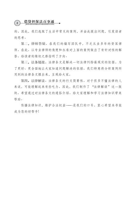 本书《借贷担保法百事通》由法宝网主编、中国法制出版社出版,是一本面向大众的实用型法律普及读物。围绕日常生活中常见的借贷与担保问题,通过“现实困惑→律师答疑→法条链接→法律解读”的结构,层层递进,帮助读者轻松理解复杂的法律条文。书中案例真实生动,涵盖自然人借款利息约定、抵押登记效力等高频纠纷场景,兼具实用性与可读性。无论是个人借贷还是企业融资,这本书都能为你提供清晰的法律指引,有效防范风险、维护权益。适合普通读者、中小企业主及法律初学者阅读参考。