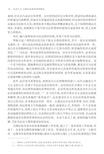 本书汇集无锡法院近年来具有代表性的裁判案例,立足成文法传统,探索案例指导制度在司法实践中的价值与路径。通过真实案件的梳理与裁判要旨的提炼,展现法官如何在法律框架内运用经验与理性,实现个案公正,并推动法律适用的统一与完善。书中既有对“遵循先例”理念的深入思考,也体现了基层司法在填补法律空白、约束自由裁量、提升审判质量方面的积极探索。这些案例不仅是审判经验的载体,更是向社会传递公平正义的桥梁。适合法律从业者、研究者及关注司法改革的读者阅读。