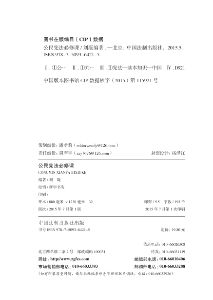 本书由刘凝编著,由中国法制出版社出版,是一本面向普通公民的宪法普及读物。通过清晰的结构与平实的语言,系统讲解中国宪法的基本原则、核心内容与实际应用,帮助读者理解自身权利与义务。书中融入“经典课堂”与“案例释疑”板块,结合真实案例解析法律条文,增强可读性与实用性。适合作为大众法治教育的入门读物,也适合学生、基层工作者及对宪法感兴趣的读者自学使用。2015年首版发行,内容紧扣我国现行宪法框架,是了解宪法基础知识的优质选择。