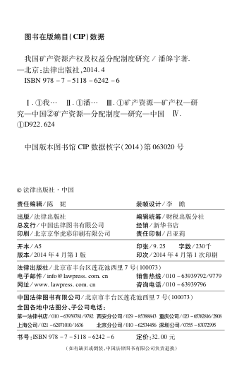 本书由潘宇著,法律出版社于2014年出版,聚焦我国矿产资源产权制度及其权益分配机制的法律与政策框架。基于扎实的理论分析与现实问题考察,作者深入探讨了矿产权归属、资源配置效率、利益相关方权责划分等关键议题,兼具学术深度与实践参考价值。适合作为法学、公共管理及资源经济领域研究者与政策制定者的参考资料。内容结构清晰,论述严谨,是理解中国自然资源产权制度改革的重要读本。
