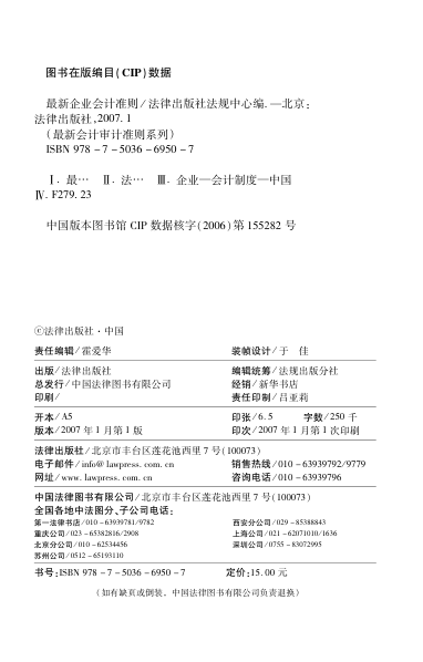 本书由法律出版社法规中心编撰,系统收录了自2007年1月1日起施行的《企业会计准则》全文,是了解中国会计制度变革的重要参考资料。内容涵盖会计确认、计量与报告的基本原则,详细界定资产、负债、所有者权益等会计要素的定义与确认标准,并强调权责发生制、持续经营、可比性等核心会计理念。书中还体现了会计信息质量要求的提升,如实质重于形式、谨慎性和及时性等原则,为企业财务实践提供清晰指引。适合财会从业人员、审计人员及企业管理者阅读参考。