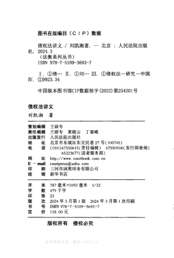 本书是北京大学法学院刘凯湘教授多年教学与研究的结晶,系统阐述债权法的基本原理与制度构造,内容涵盖债之发生、履行、保全、转移与消灭等核心议题。作为‘法衡系列丛书’之一,本书秉持法理与实务并重的风格,语言平实、逻辑清晰,既适合法学专业师生深入研习,也便于司法实务工作者参考运用。书中融合民法典最新规范与理论前沿,注重体系化思维与问题意识的培养,是一本兼具学术深度与实践价值的优质讲义。OCR版本便于检索阅读,是学习中国债权法不可多得的参考资料。