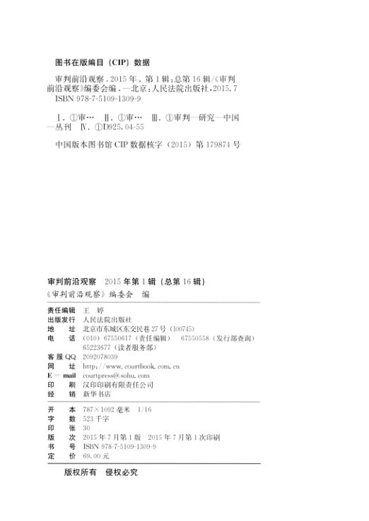 本书为《审判前沿观察》系列第16辑,2015年第一辑,由人民法院出版社出版。内容围绕上海一中院建院二十周年展开,收录多篇关于审判权运行机制改革、法院队伍建设、信息化发展及服务自贸区司法保障的专题文章。既有高层讲话,也有实务总结,展现了法院系统在推进以审判为中心的改革进程中的探索与成果。作为了解中国司法前沿动态的重要参考资料,本书适合法律从业者、司法研究人员及对法院改革感兴趣的读者阅读。
