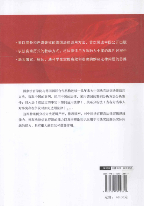 本书由国家法官学院与德国国际合作机构联合编写,系统引入以逻辑严密著称的德国法律适用方法,聚焦中国物权法实务案例,采用‘归入法’与‘关系分析法’进行深度剖析。作为中德司法合作十余年成果的结晶,书中内容源自为5000多名法官授课的培训实录,强调理论与实践融合,助力提升法律人分析案情、准确适用法律的能力。适合法官、律师、法科学生深入学习案例分析方法,是连接法学理论与审判实务的桥梁之作。