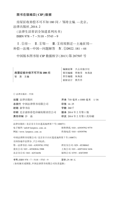 本书属于《法律生活常识全知道系列丛书》,由邹涛主编,聚焦房屋征收与补偿中的常见法律问题。全书以问答形式展开,涵盖征收程序、补偿标准、安置方案、维权途径等关键内容,结合最新法律法规,语言通俗易懂,兼具实用性与权威性。书中还穿插典型案例,帮助读者更直观理解政策应用。无论是被征收人还是关注拆迁政策的普通市民,都能从中获得切实的法律指导。作为一本面向大众的普法读物,它让复杂的法律条文变得可读、可用、可信赖。