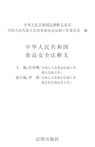 本书由全国人大常委会法制工作委员会组织编写,信春鹰主编,李援副主编,汇聚直接参与立法工作的专家团队,权威解读《中华人民共和国食品安全法》每一条文。