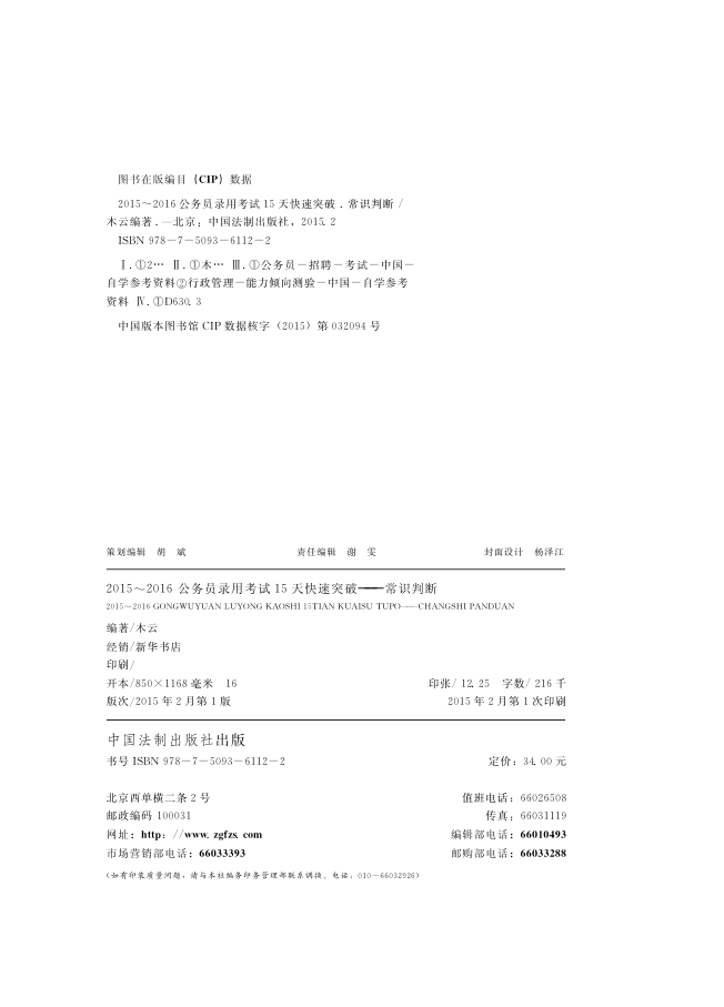 本书是‘公务员录用考试15天快速突破’系列中针对常识判断模块的专项辅导书,由全成公考团队骨干教师木云主编,中国法制出版社权威出版。内容紧扣历年真题,系统梳理政治、法律、经济、科技、人文、地理等高频考点,注重知识整合与应试技巧结合。书中不仅提炼出高效记忆方法,还融入了独家“秒杀技巧”,帮助考生在短时间内提升答题准确率。