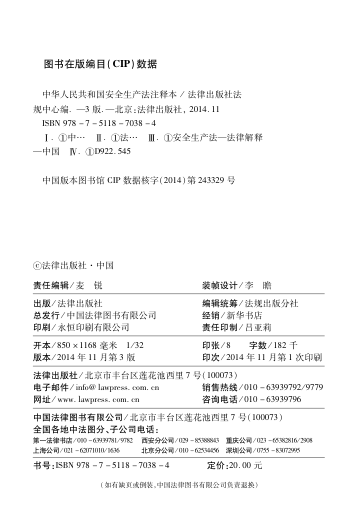 本书为《中华人民共和国安全生产法》的权威注释版本,由法律出版社法规中心组织法律专家精心编写。全书以2014年修订后的新《安全生产法》为基础,系统梳理立法背景、核心条款与适用要点,特别针对‘安全第一、预防为主、综合治理’的方针,深入解析‘三个必须’、政府监管职责、企业主体责任等关键制度。