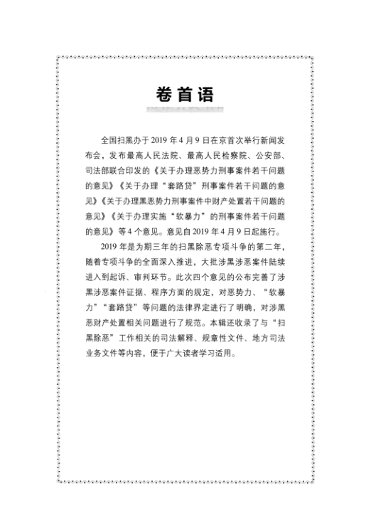 本书为《最新法律文件解读丛书》的第167辑,聚焦2019年扫黑除恶专项斗争关键阶段的重要政策动向。收录最高人民法院、最高人民检察院、公安部、司法部联合发布的四项核心意见,涵盖恶势力、‘套路贷’、‘软暴力’及黑恶势力财产处置等热点问题的法律界定与适用标准。内容权威实用,兼具指导性与实务参考价值,是刑事司法从业者、法学研究者了解扫黑除恶专项工作法律依据的重要参考资料。