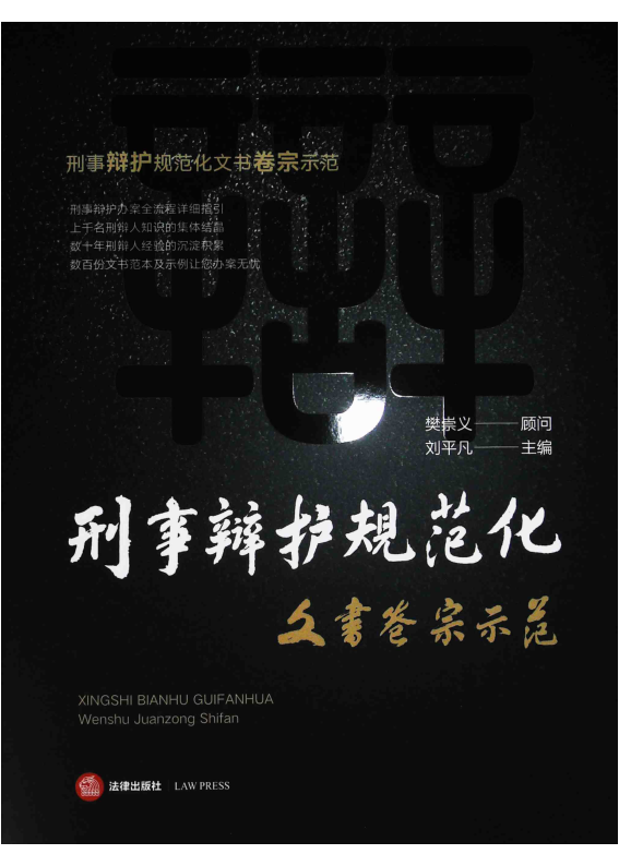 本书由樊崇义担任顾问、刘平凡主编,凝聚数十位刑辩律师的实战经验,系统梳理刑事辩护办案全流程。全书以“规范化”为核心,结合我国刑事诉讼制度改革背景,提供涵盖各环节的标准化文书范本与操作指引,兼具实务性与理论深度。书中内容源自“律师刑事辩护规范化研究”课题成果,响应以审判为中心、认罪认罚从宽等制度需求,助力律师提升辩护质量,实现有效辩护。无论是新手律师入门,还是资深从业者参考,都极具实用价值。随书附有大量真实示例与可借鉴卷宗模板,堪称刑辩工具书的典范之作。