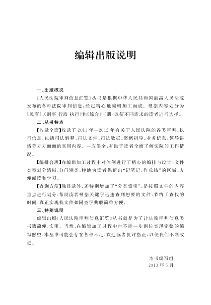 作为法院实务工作者、法律研究人员及法学生的重要参考工具书,本书兼具权威性与实用性,是了解当时司法动态、把握审判政策走向的可靠资料源。虽为早期出版,但在制度演变研究和案例溯源中仍具重要价值。