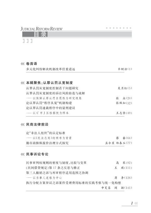 本辑《司法改革论评》以“认罪认罚从宽制度”为核心专题,深入探讨其程序构建、自愿性保障与量刑建议等关键问题,兼具理论深度与实证分析。同时涵盖民商法前沿、民事诉讼专论、司法制度研究及刑事、经济、宪法行政法等多个领域,内容扎实,视角多元。卷首语回顾五年来我国多元化纠纷解决机制的改革进程,梳理中央政策与地方实践成果,展现ADR发展的广阔前景。本书适合法学研究者、司法实务工作者及对司法改革感兴趣的读者,是了解当前中国司法制度演进的重要参考。
