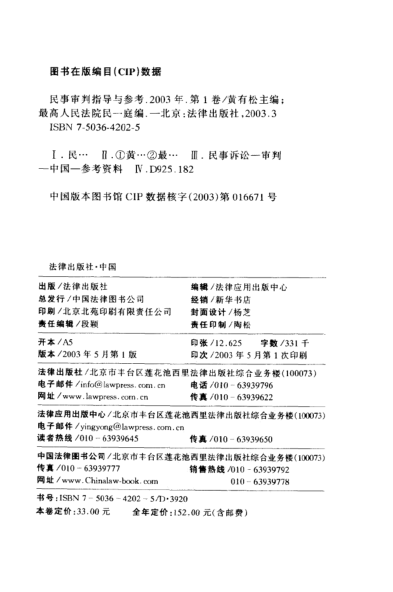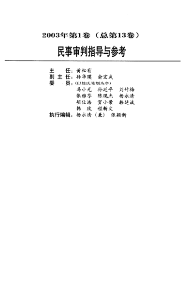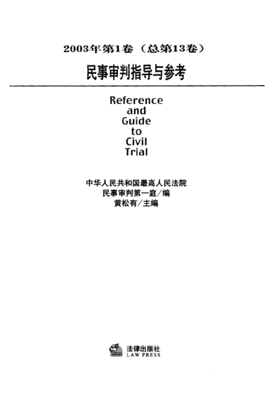 本书由中华人民共和国最高人民法院民事审判第一庭主编,黄松有担任主编,是2003年度《民事审判指导与参考》系列的首卷。内容涵盖民事审判领域的政策解读、实务指导与典型案例分析,聚焦当时司法实践中的热点与难点问题,为各级法院法官、律师及法律研究者提供权威参考。