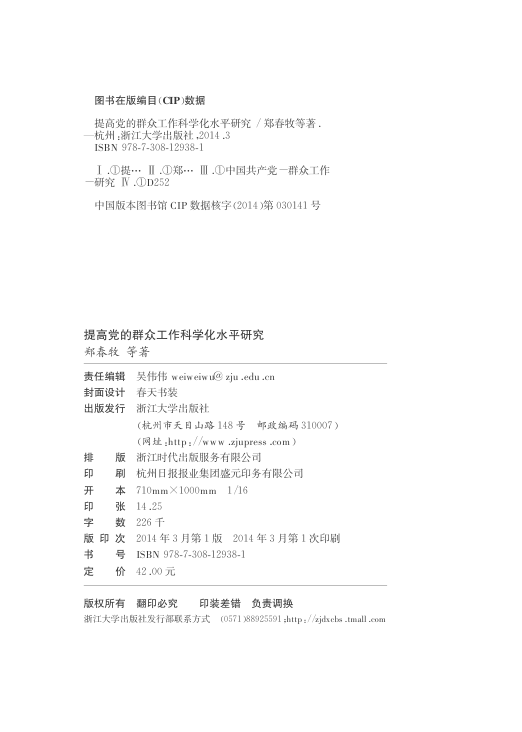 本书由郑春牧等著,浙江大学出版社2014年出版,系统探讨了中国共产党在新形势下如何提升群众工作的科学化水平。群众工作是党执政的根基与传统优势,面对时代变迁带来的主客体变化,本书从理论与实践双重维度出发,阐释了群众工作科学化的内涵、路径与现实意义。书中结合党的十八大关于党的建设战略部署,深入分析“以人为本、执政为民”的核心理念,并探讨群众路线教育实践活动的实施机制。尽管内容片段有限,但已展现出较强的理论深度与现实关照,适合党建研究者、政治理论学习者及公共管理领域读者参考。