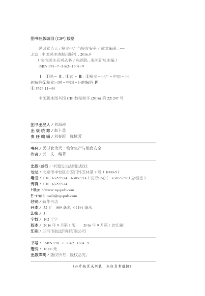本书《民以食为天:粮食生产和粮食安全》是“法治民生系列丛书”之一,从法治与民生结合的角度深入探讨我国粮食生产与粮食安全的核心议题。书中不仅梳理了当前粮食领域的政策法规,还直面农民权益保障、农业现代化、食品安全等现实痛点,呼应国家精准扶贫与可持续发展战略。内容立足实际,以问题为导向,兼具可读性与实用性,适合关心三农问题、公共政策及社会发展的读者阅读。通过法治思维解码粮食安全背后的民生关切,是一本贴近国情、服务基层的参考读物。