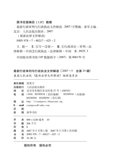 最新行政审判与行政执法文件解读 2007年第5辑 总第29辑👈点击保存