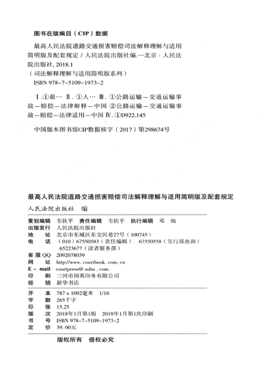 本书由人民法院出版社权威编撰,属于‘司法解释理解与适用简明版系列’之一,聚焦道路交通损害赔偿领域的司法实践问题。在保留原司法解释完整条文的基础上,提炼要旨、精解实务要点,并补充新法变化与重点条文的权威解读。书中融合典型案例指导与实用操作建议,兼具理论深度与实践价值,是法官、律师、保险从业者及法律研究者处理交通事故赔偿案件的重要参考。传统纸质内容与数字资源深度融合,扫码即可获取延伸资料,实现线上线下同步学习。