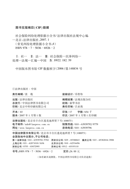 本书由法律出版社法规中心编撰,系统梳理了我国社会保险纠纷处理的相关法律法规与政策文件,是实务工作者和普通劳动者解决社保争议的重要参考工具。内容涵盖核心法律、行政法规、司法解释、地方政策及典型案例,结构清晰,分类细致,便于快速查阅。作为‘常见纠纷处理依据小全书’系列之一,本书立足实际需求,强调实用性与可操作性,特别适合人力资源从业者、法务人员、律师及关注社保权益的公众使用。虽出版于2007年,但其收录的基础性法规仍具参考价值,配合后续立法动态,可为理解社保制度演变提供扎实依据。