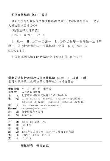 最新司法与行政程序法律文件解读 2006年第8辑 总第14辑👈点击保存