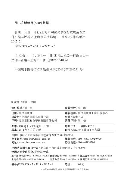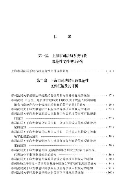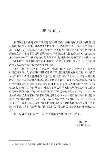 本书由上海市司法局主编,系统梳理并评析了本市司法行政系统现行有效的行政规范性文件,紧扣‘合法、合理、可行’三大原则,全面反映依法行政的实践路径。内容涵盖文件现状研究报告、经备案的现行有效文件全文及逐篇评析,并按层级分类收录局属机构及联合发布的规范性文件,兼具权威性与实用性。不仅是司法行政工作者的重要参考,也为研究地方规范性文件制定机制提供了扎实的案例支持。适合法律实务人员、政府管理者及法学研究者查阅使用。