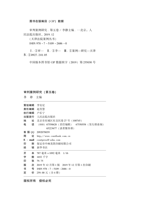 本书为《天津法院案例丛书》第五卷,由李静主编,聚焦知识产权领域的典型审判案例,汇集天津法院多年司法实践中的代表性裁判。内容源自真实案件,涵盖裁判思路、法律适用与法理分析,兼具实务参考与学术研究价值。作为人民法院出版社出版的权威案例研究系列之一,本书不仅展现法官司法智慧,也为统一法律适用、指导类案裁判提供有力支持。适合法官、律师、法务及法学研究者阅读参考。