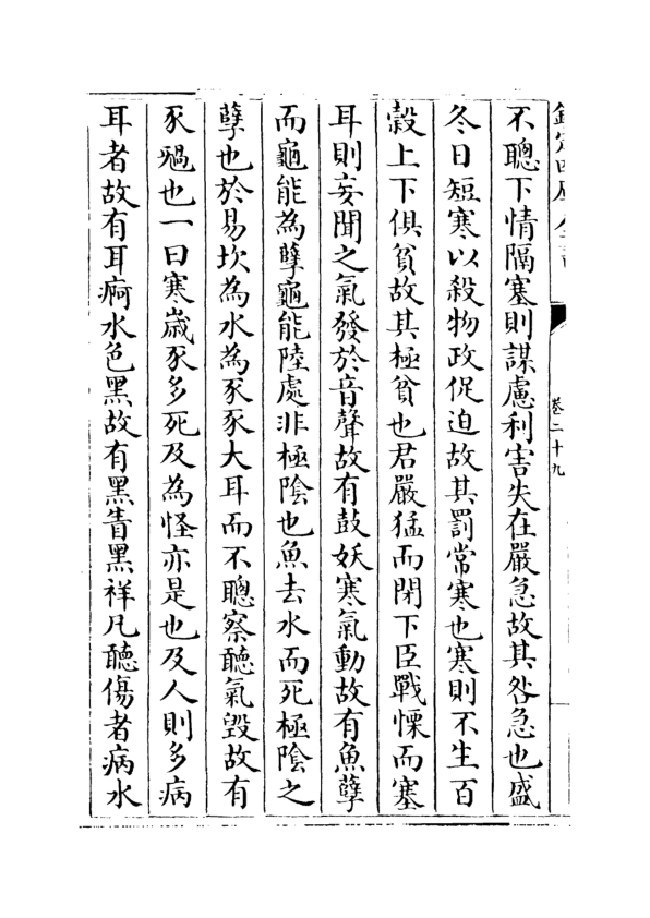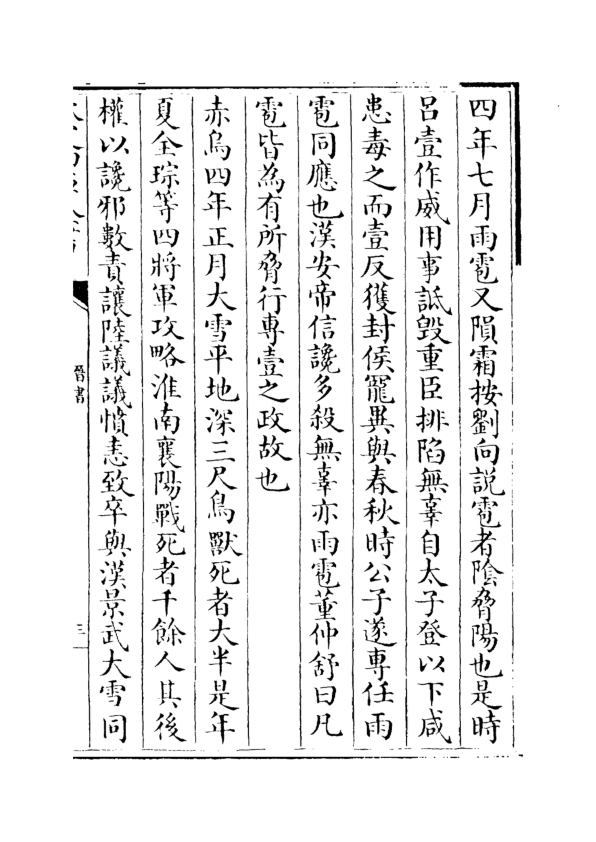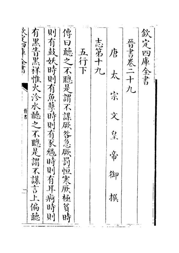 本书为《钦定四库全书》所收《晋书》卷二十九节选,属‘志第十九·五行下’,由唐太宗御撰。内容聚焦古代‘五行’思想中‘听之不聪’引发的‘恒寒’‘鼓妖’‘鱼孽’等灾异现象,系统阐述自然征兆与政治得失之间的对应关系。通过历史事件如孙权嘉禾年间陨霜、雨雹、大雪等案例,揭示古人‘天人感应’的政治哲学逻辑。文本兼具史学价值与思想深度,是研究魏晋史观、灾异论及早期政治神学的重要材料。适合历史、哲学及古典文献爱好者阅读参考。