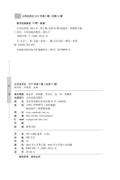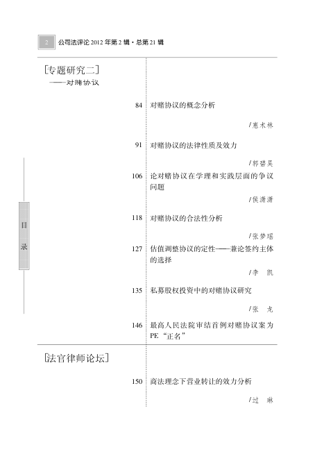本书为《公司法评论》系列的2012年第2辑(总第21辑),由赵旭东、宋晓明主编,汇集了公司法领域的前沿研究与实务探讨。内容涵盖小微企业立法完善、项目公司诉讼、董事会体制下的国企管理等热点议题,重点聚焦于“股权转让”与“对赌协议”两大专题。书中深入剖析股东优先购买权的法律困境、有限公司股权善意取得结构,并从学理与实践双重维度解析对赌协议的效力与合法性问题。同时收录法官、律师实务观点及境外股东权利发展动态,兼具理论深度与司法适用价值。适合法学研究者、法律实务工作者及关注公司治理发展的读者参考。