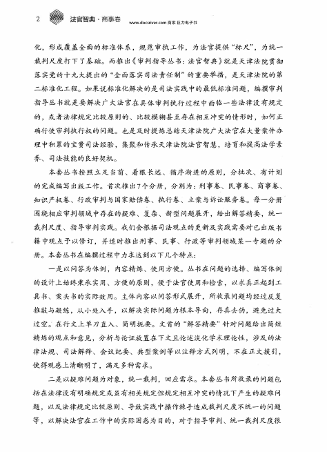 本书是天津法院审判指导丛书之一,由高憬宏总主编、钱海玲主编,聚焦商事审判领域的疑难、复杂与新型问题。全书采用问答体例,内容精炼、便于检索,围绕法律适用模糊、裁判尺度不一的实务痛点,提炼司法经验,统一裁判标准。