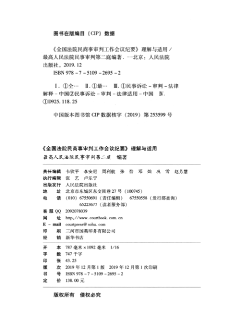 人民法院出版社2019年12月首版,ISBN 978-7-5109-2695-2,定价138元——专业必备,值得精读与案头常备。
