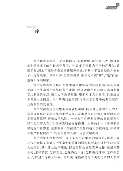 这是一本真正为普通人写的二手房交易法律指南。作者是深耕房地产与建设工程领域多年的执业律师,将复杂的法律流程拆解为买房11步、卖房5步的清晰操作路径,覆盖签约、贷款、交房、过户、中介委托、公证等关键环节。书中60余篇短文均源自真实典型案件,不堆砌法条,重在‘怎么做’——比如合同怎么签才避坑、贷款不成如何止损、交房时该验什么、中介失职怎么办。序言中上海市律协副会长厉明律师点出本书核心价值:防患于未然,胜过事后打官司。无论你是首次置业者、置换改善族,还是想自主卖房的业主,它都能成为你口袋里的‘房产法律顾问’。
