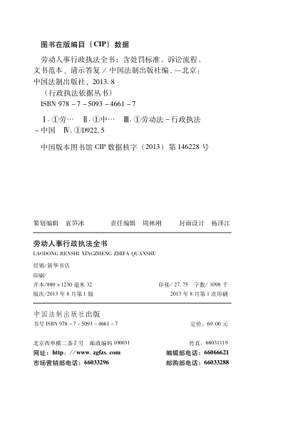 这是一本面向劳动保障监察、人社系统执法人员及行政法律实务工作者的实用型工具书。全书紧扣一线执法痛点——如处罚随意、程序混淆、文书不规范、权利告知缺位等,系统集成现行有效的法律、行政法规、部门规章、司法解释及官方请示答复,并对废止/修订条款明确标注,确保依据时效性与准确性。特色在于‘四合一’结构:清晰列明各类违法行为的处罚标准,梳理行政诉讼全流程节点,提供可直接套用的执法文书范本(含责令整改、行政处罚决定书等),并收录国务院及人社部等部门的权威请示与答复意见。附有流程图解与最高法公报典型案例,兼顾规范性与操作性。虽出版于2013年,但核心依据仍具参考价值,适合案头常备、快速查检。