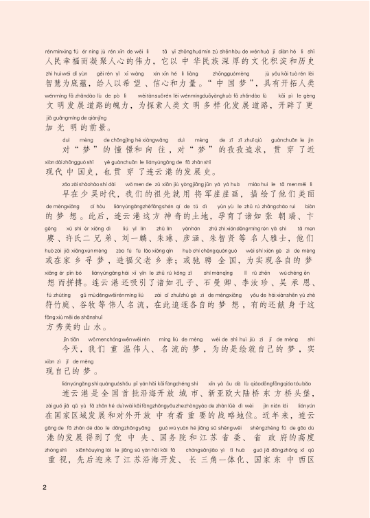 这是一本专为小学低年级学生编写的爱国主义教育读物,以‘中国梦’为精神主线,巧妙融入地方视角(连云港——‘港城梦’)与个体成长(‘我的梦’),实现国家叙事、地域认同与儿童生活经验的有机统一。书中语言简明亲切,配图丰富(虽未见图,但开本与定位暗示图文并茂),通过历史人物故事、家乡名人轶事、新时代发展成就等贴近儿童认知的内容,帮助孩子理解‘梦想’与家国之间的温暖联结。编者立足2012年习近平总书记首次提出‘中国梦’的时代背景,将宏大主题转化为可感、可知、可追的童心表达,是基础教育阶段价值观启蒙的务实之作。