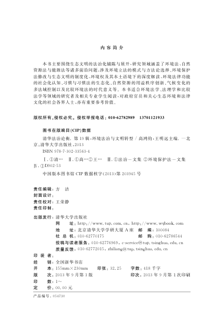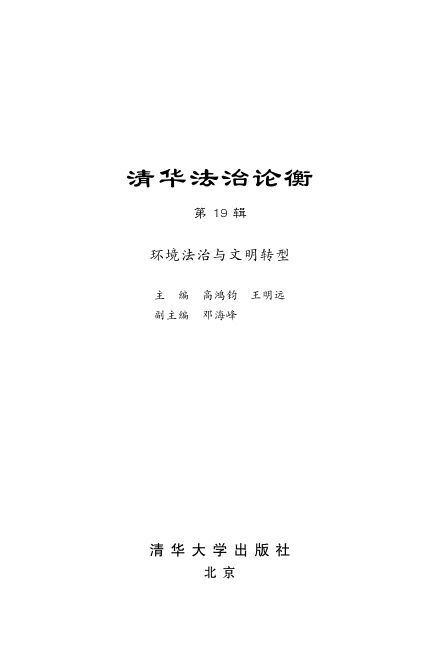 本辑《清华法治论衡》以‘环境法治与文明转型’为主题,系统探讨生态文明如何通过法治化路径落地生根。全书汇集环境法、自然资源法、能源法及比较环境法等多维视角,涵盖环境保护法修订、环境权的本土化阐释、习惯法的生态转向、气候变化的跨法域应对等前沿议题,兼具理论深度与实践关切。编者高鸿钧、王明远领衔,作者团队来自学界与实务一线,内容扎实、视野开阔。既适合环境法学、法理学和比较法学研究者及研究生研读,也为政策制定者与关注可持续发展的公众提供重要参考。