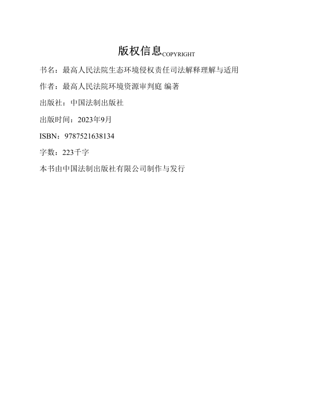 最高人民法院生态环境侵权责任司法解释理解与适用 2023👈点击保存